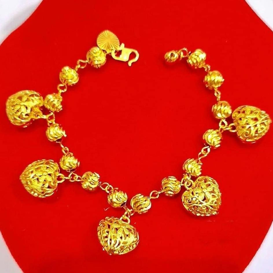 EMAS KOREA 24K 916 RANTAI TANGAN BIJI LADA 5 LOVE KERAWANG CAKUK S